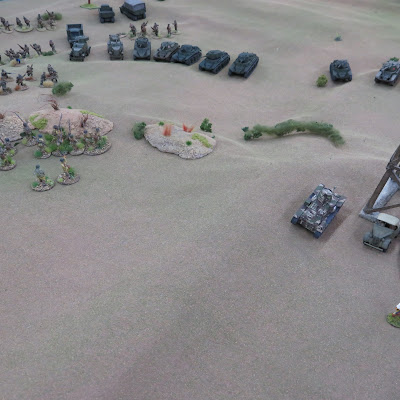 Japanese forces from their indolent Left Flank launched a Banzai charge (image upper left) supported by several tanks. However, the Banzai charge was stopped cold by flanking fire off image upper left. This ended the battle.